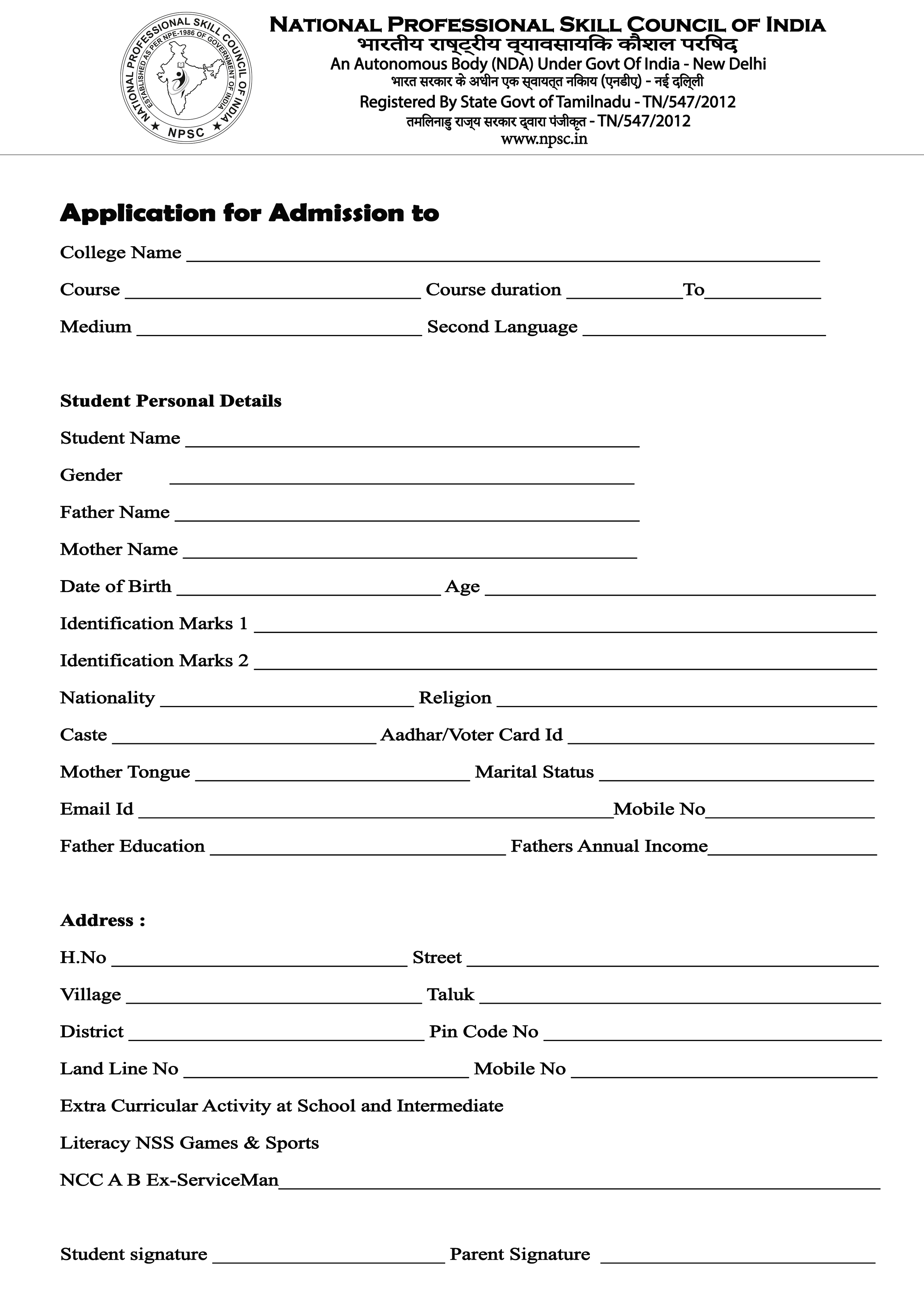Registered By State Govt. of Tamilnadu - No.TN/547/2012